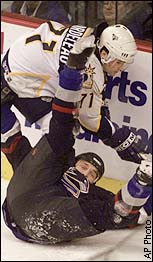 Canucks goalie Garth Snow made 48 saves after being briefly benched in the first period. Snow had given up two goals on seven shots when coach Marc Crawford replaced him for 17 seconds with Felix Potvin.